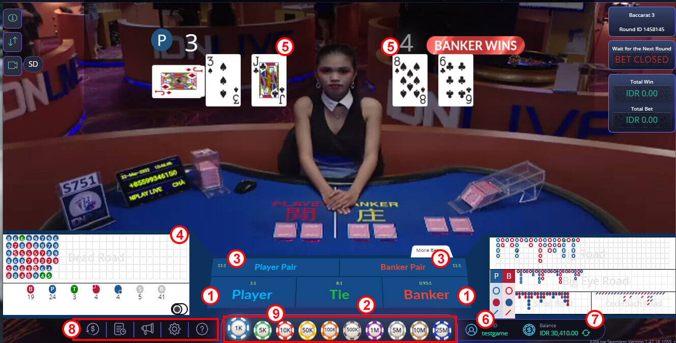 - Kartu Player / Kartu Banker : Tampilan Kartu Player / Kartu Banker